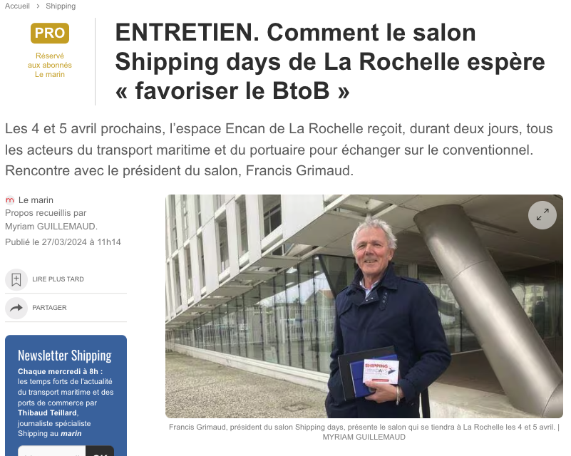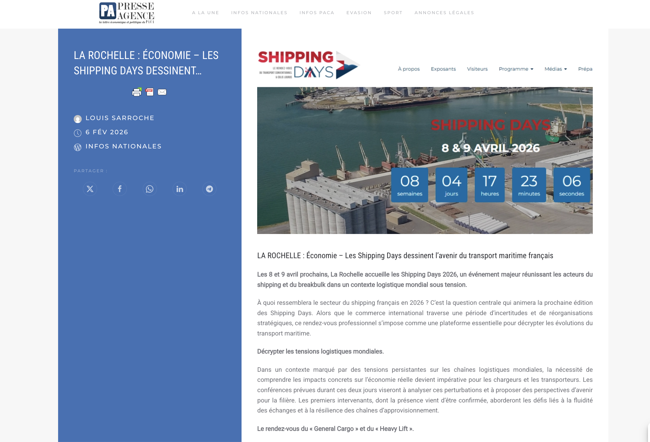 Prenez votre place à Shipping Days en tant que partenaire média ou journaliste accrédité.